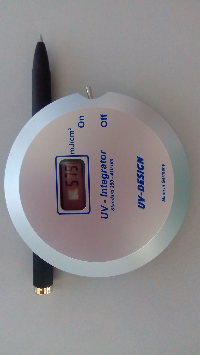 c. 直到UV能量計(jì)的顯示屏上有測(cè)量顯示,例如800毫焦耳/平方厘米。(800mj/cm2)